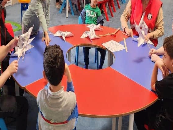 Minik misafirlerimiz eğitmen eşliğinde gereken araçlar ile rüzgar güllerini oluştururlar.